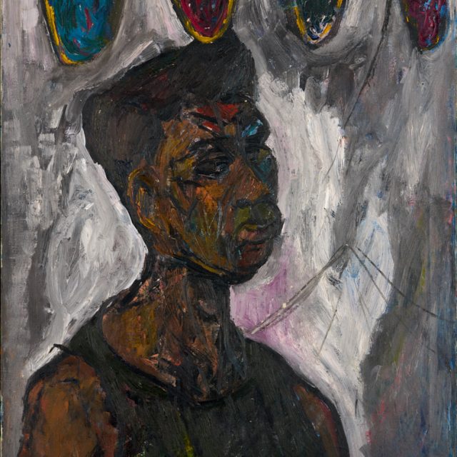 Artist: Albert Adams (b. 1929 – d. 2006) Title: Self Portrait Year: 1958 Medium: Oil on Canvas Dimensions: Accession Number: US2013-12 Acquisition info: Gift from Edward Glennon, 2012. Supported by the ArtFund. This work is part of our Albert Adams Special Collection.